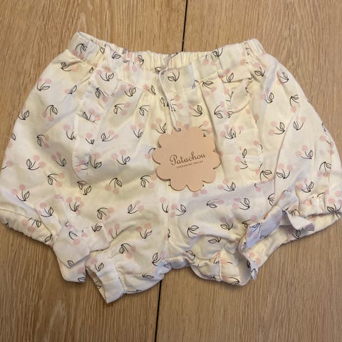 Sparkebukse fra Patachou. Lyseblå og hvit. Lomme foran. Brettekant ved føttene.