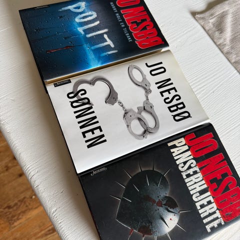 Bøker av Jo Nesbø selges for 40 kr pr stk. Pris kan diskuteres ved kjøp av flere bøker.