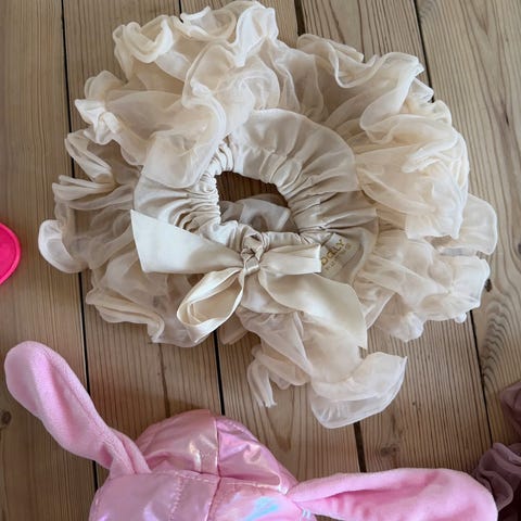 En som vil kle seg ut som en enhjørning. Vinger til å sette på, hode festes som en lue. Hale som festes med borrelås. I god stand, knapt brukt. Trenger nok en liten vask. Til ca 2 år.