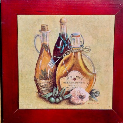 Vintage flis med koselig tekst og håndlaget design selges rimelig. Opphengsmulighet på baksiden. Ca. 15 x 15 cm. Litt slitasje i nedre kant (se bilde).