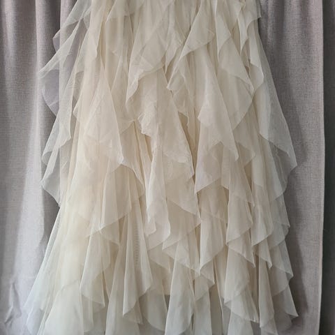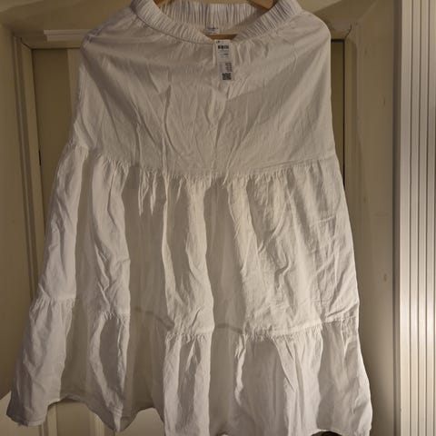 En tyll skjørt med en underskjørt i hvit farge med noen prikker nederst.