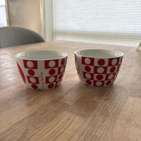 To eggeglass uten skader, men med et par svake bruksspor utvendig på det svarte. Se bilder.
