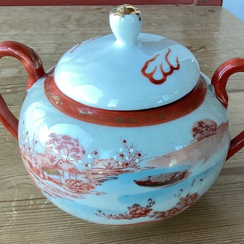 Japansk krukke med lokk eller sukkerkopp