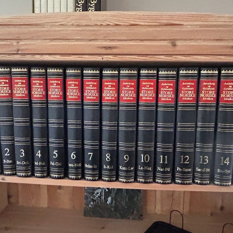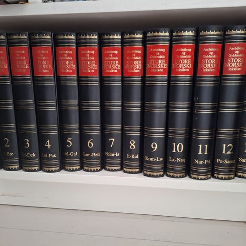 Aschehoug og Gyldendals Store Norske Leksikon gis bort. Utgitt fra 1995 (bind 1) til 1999 (bind16).