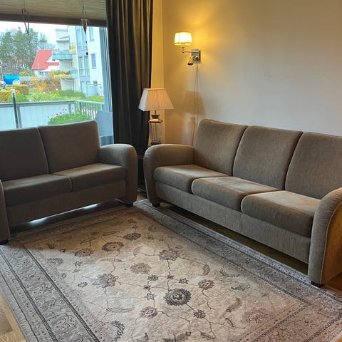 Selger min flotte tre seter , meget god sittekomfort lengde 218cm høyde 87 cm dybde 90 cm