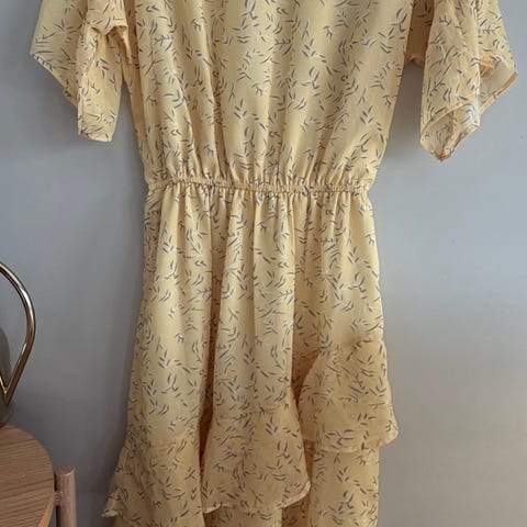 Kjempefin HM gul sommerkjole med volang str 36