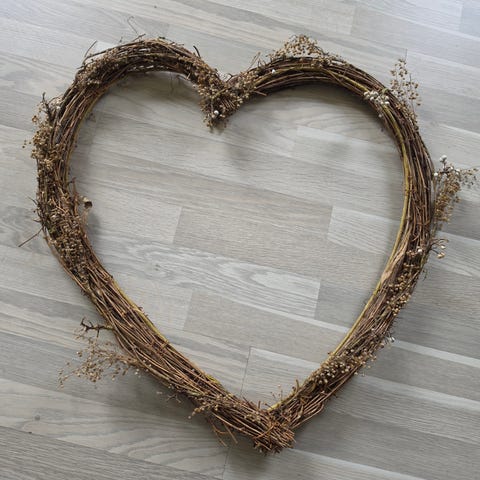 Selger hjemmelaget krans grunnet flytting. Blomstene og bladene er festet med ståltråd og/eller lim. Veldig fin på døren eller veggen 🌸