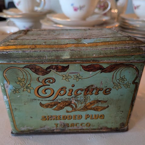 Morsom, antikk "verktøykasse" for et barn, eller en kjekk "kurv" til å bære stoppesaker e.l. oppi. Mål: l. 23,5cm, br. 14 og h. 16 cm. Må hentes. Har Vipps.