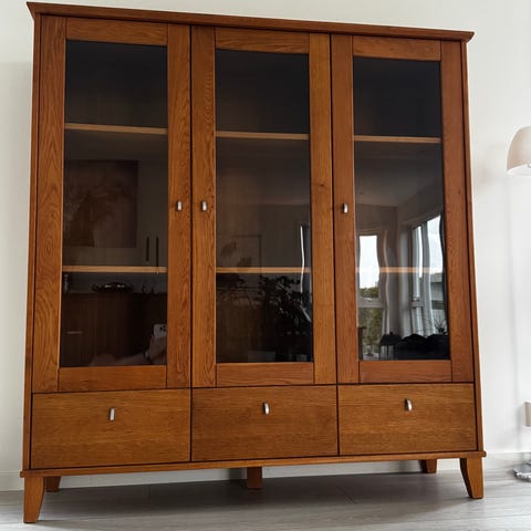 Vitrineskap i to deler selges (med tungt hjerte) til hbo. 11.500,-.