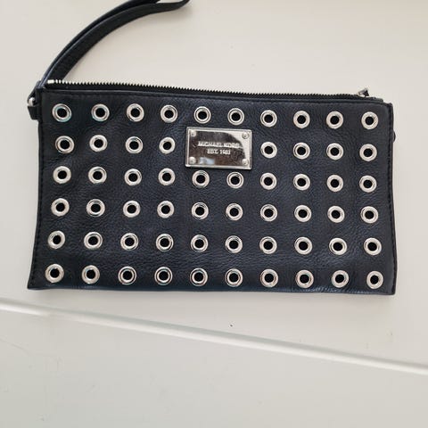 Sort Rizzo veske med «gulldetaljer» som passer til vanlig bærbar PC/Mac. Ca 37-38 cm bred. Mange lommer og glidelåser. Uten skulderstropp. Kan hentes hos selger ved Sommerlyst, Tromsø.