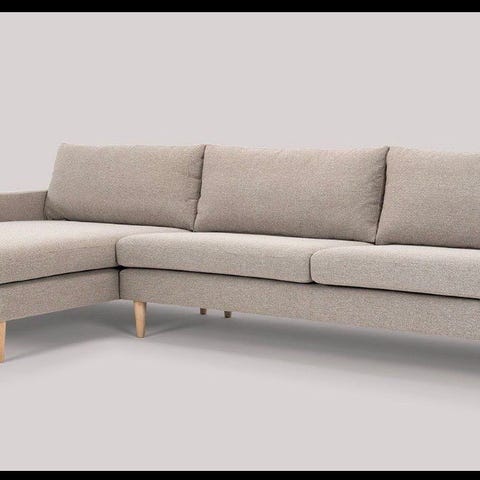Kjøpt hos https://helsetmobler.no/produkter/flexi-modulsofa/ i Hamar. Liten hjørnesofa. En svak hjørnesving.
