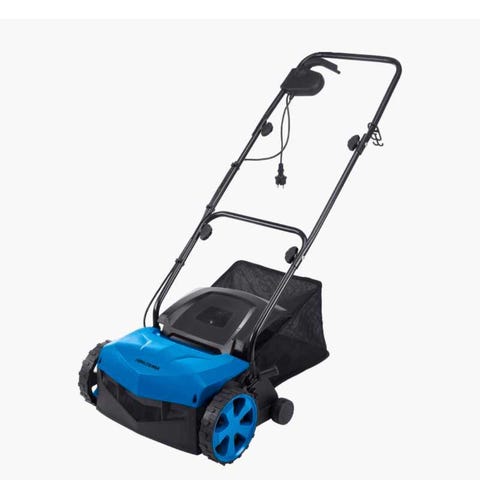 Med to forskjellige ruller. Vertikalskjærerullen skjærer striper i plenen som gjør det enklere for plenen å ta til seg vann, gjødsel og oksygen. Moseriverullen fjerner mose fra plenen. 230 V.
