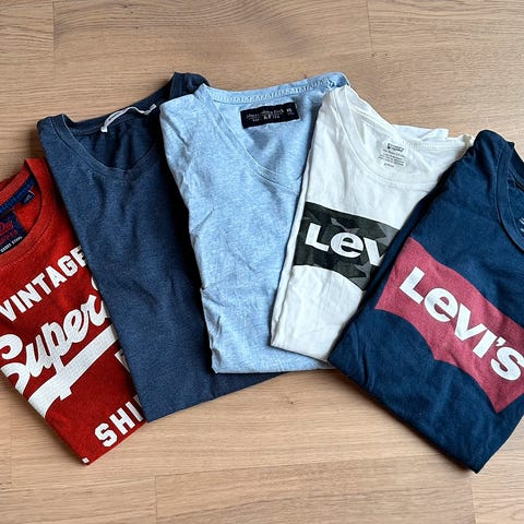 Tre pent brukte plagg i str. S fra merkene Hugo Boss, Quiksilver og Independent selges samlet for 200 kroner: