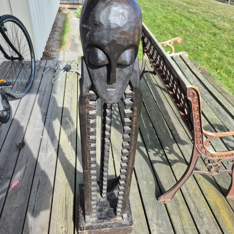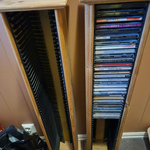 CD-stativ i stål med plass til cirka 90 CD-er selges. Stativet er 120 cm høyt.