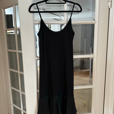 Søt kjole med volanger, stropper, detaljer på bryst og beltehempe selges kr 150.