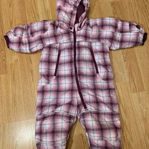 Lett foret og komfortabel, med beinstropper som holder dressen på plass og hindrer at den sklir opp. Tåler litt regn, så den egner seg godt til både barnehagebruk og trilleturer i varierende vær.