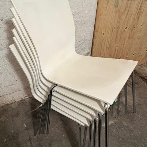 Solide stoler som er fleire år gammel, godt brukt, men fine for aldre. Nokre bruksmerker (sjå bileter)