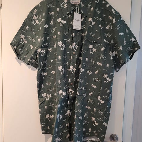 Stor skjorte fra Dressmann i fargene rødt hvitt og blått - perfekt til sommerfest eller 17 mai. Størrelse xxl, med brystlomme, 55 % lin og 45 % bomull. Kr 70.