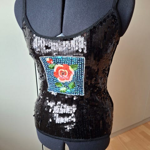 Pyntet med paljetter. Føret.