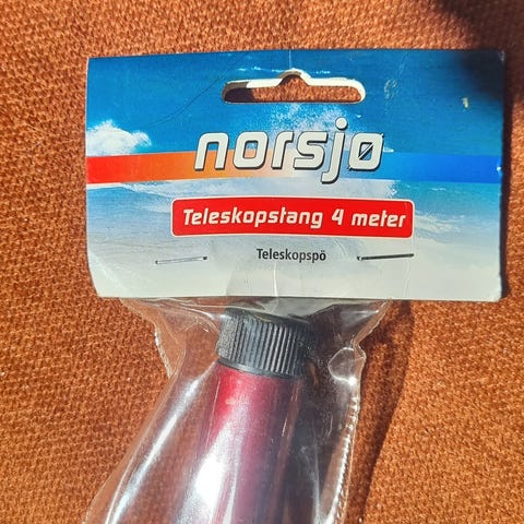 Teleskop stang aldri brukt. 4m med float og krok. Har 2 stk. Selges for kr.100 pr stk.
