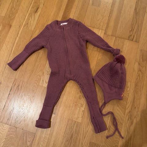 Lanullva ulldress og polarn o.pyret tynn ullbukse. En tråd som stikker ut noe bak på ryggen på dressen, se bilde.