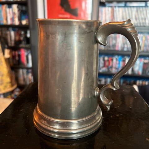 ELDRE HAUGRUD TINNVASE MED GRAVERINGER I FRA 1970 TALLET.
