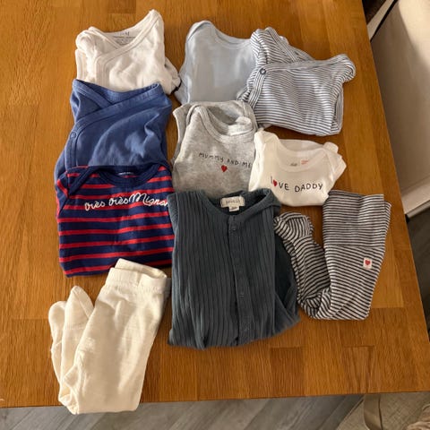 Pent brukt klespakke i str 56. 4 bodyer og 7 bukser. Sjekk gjerne mine andre annonser!