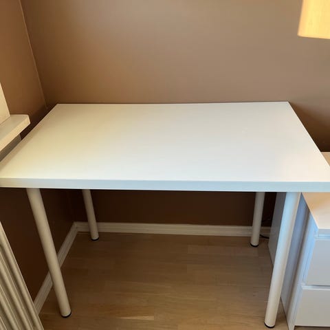 Plata har vært dekket med kontaktplast så det er ingen bruksmerker på toppen , uten om de etter skruer på under siden og kun på en side av plata