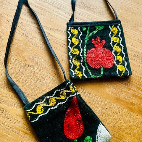 Liten brodert veske til f.eks. penger eller til en liten mobil. Pris: 100 kr. Kan sendes i posten. Da kommer frakt i tillegg.