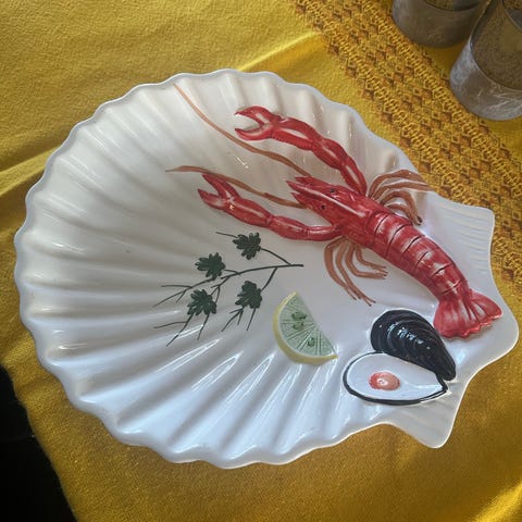 Fire stor serveringsfat til sjømat reker/ krabbe/ osv . Som nye….
