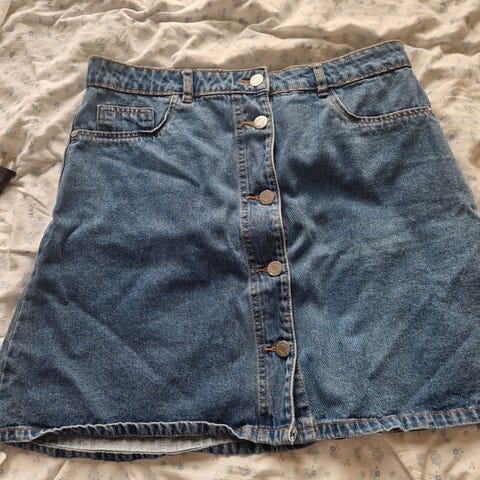 Denim skjørt med litt stretch. 50 cm langt.