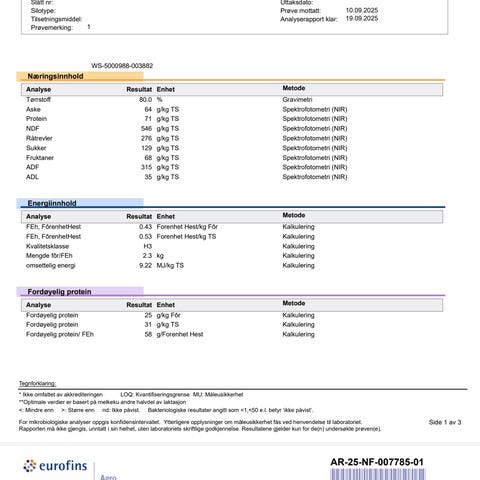 Vi selger 65 rundballer fra 1.slått i juni. Høyet består av timoteieng med blandingsgress. En rundball veier ca 420kg. Usprøytet.