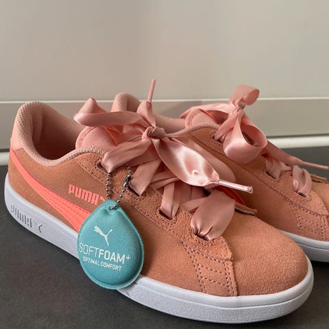 Helt nye Puma sko i semsket skinn selges da de ble for små.