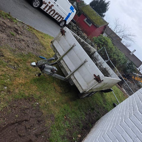 Kan ha 2700kg i nyttelast, egenvekt 800kg. henger fint bak på bilen!