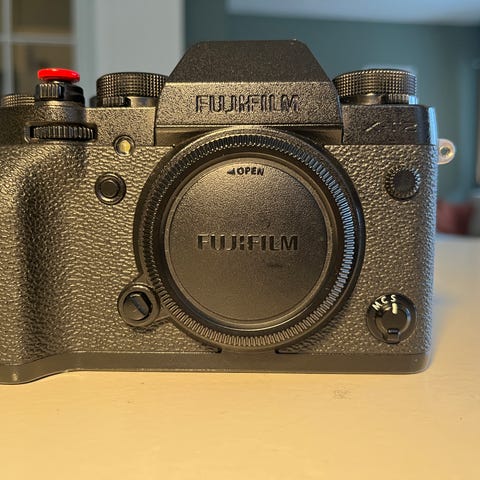 Pent brukt Xt-2 med originalt vpb-xt2 vertikalgrep, som har rom for to ekstra batterier. Disse kan lades direkte i grepet med medfølgende adapter. Gir også hodetelefonkontakt med minijack, noe kameraet ellers mangler. 4 batterier og standard lader følger med.