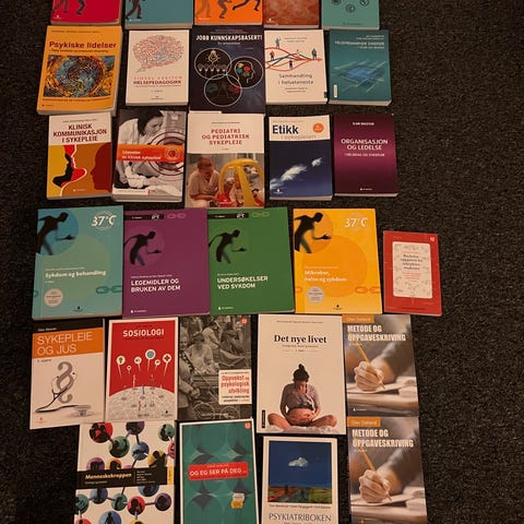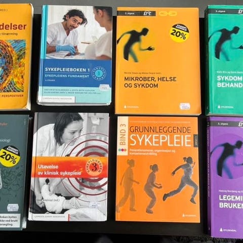 Hei. Jeg selger div. Sykepleiebøker hovedsakelig pensum til 1. året. Bøkene er kjøpt i år/ i fjor høst og er nyeste utgaver. Kan møtes i Bergen eller sendes for betalt frakt. Pris kan diskuteres.
