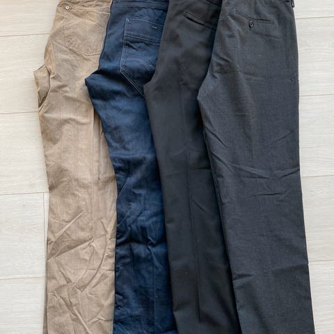 Pent brukte gensere og bukse.