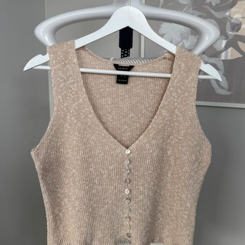 Nydelig ubrukt strikkevest fra Gudrun Sjoden beige og hvit.