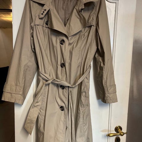 Super lekker kåpe ser ut som lin men er laget av hemp og bomull. Er str M/L men er romslig i størrelsen jeg bruker selv 42/44 og den passer meg. Frakken er kun brukt en gang, den er ikke kritthvit men offwhite.
