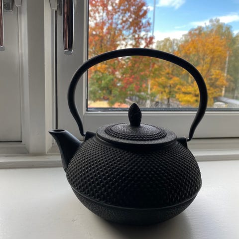 Nydelig Bredemeijer støpejernskjele med lokk i porselen