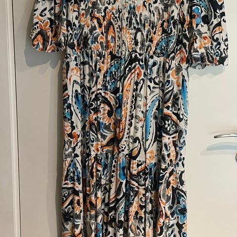 Lett knelang sommerkjole i viskose med knepping i front. Knappene er trukket med stoff.