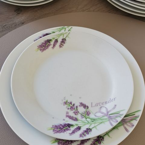 Det er 10 middagstallerkener og 7 suppetallerkener. De er i god stand.