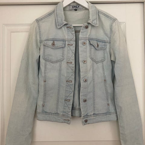 Meget pen, lite brukt jeans jakke. Farge lys blå. Liten i størrelse.