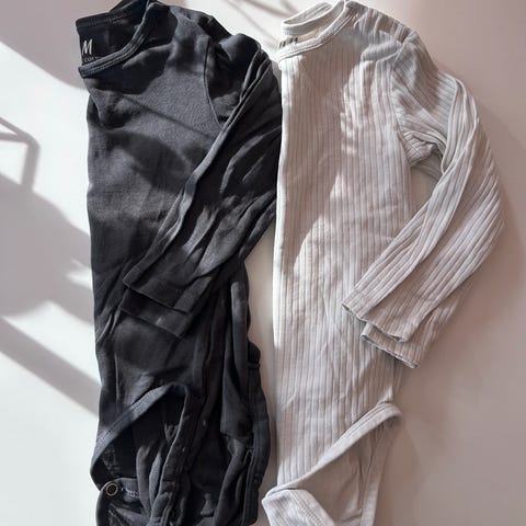 Søt body hvit body med blå genser over fra Lindex i str 86. Disse er sydd sammen. Veldig praktisk da det holder seg på plass 😅🤭