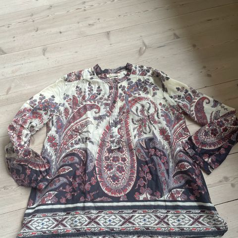 Bluse i str. 38. Brukt ved to anledninger, men er ikke helt rett farge til meg. 84% bomull og 16% viskose. Helt nydelig bluse🌸