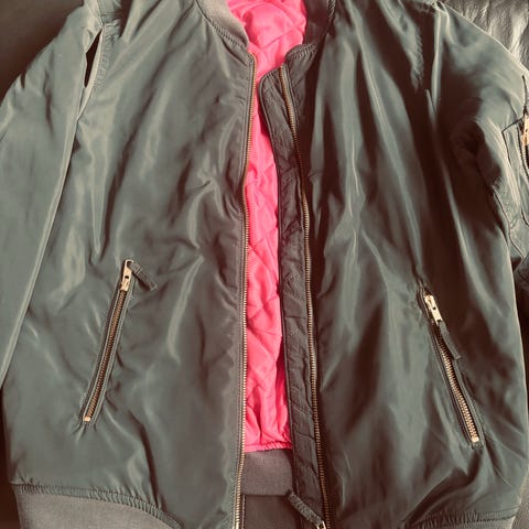 Kul jakke med knapper, grått for i hette. Masse jakke igjen, perfekt til skolestart.