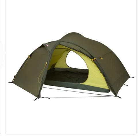 Romslig kuppeltelt av høy kvalitet leies ut. Veldig god ventilasjon, og da teltet er frittstående, kan det settes opp nærmest hvor som helst (ikke avhengig av plugger for å stå oppreist. Luksus med to innganger - det gir utsikt fra soveposen fra begge sider, og god plass til bagasje! God høyde under taket. Veier.
