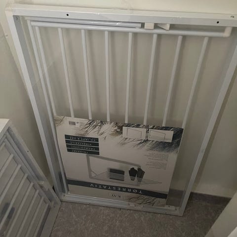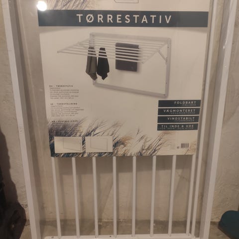 Vegghengt tørkestativ forsatt i original emballasje av typen KAY. Foldes flatt mot veggen når det ikke er bruk, ergo plassvennelig. Selges da dette ble et bomkjøp for meg, må ha en annen type.