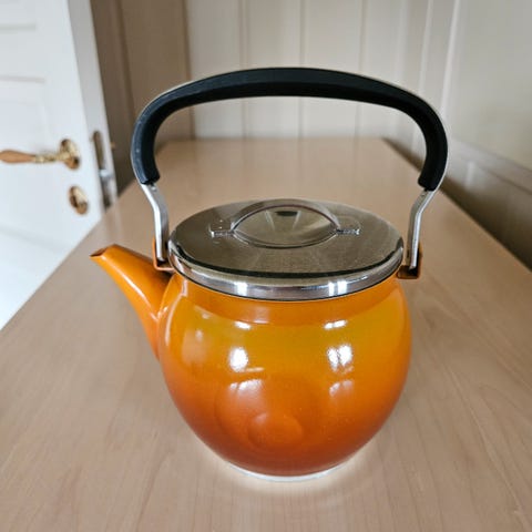 ."Bakelse" kruset er «dobbeltvegget», altså isolert, så selv om det er varmt på innsiden, kan du alltid omfavne kruset med hendene uten å bli brent. Kruset er laget av feltspatporselen og designet har sin arv i gamle, små og tynne porselenskaffekopper. Avlastningskanten i bunnen er for eksempel en funksjon inspirert av de klassiske svenske kaffekoppene. Inspirasjonen til designet kommer fra en kafé i Barcelona. Trykket i Dalecarlia-blå farge. Modellen har ingen håndtak. Store kopper. Selges samlet, i flott stand, uten nagg eller krakelering. Ikke i produksjon lenger. Kan sendes for 69kr pakke sporbar postnord (Vipps) eller bruk fiks ferdig.
