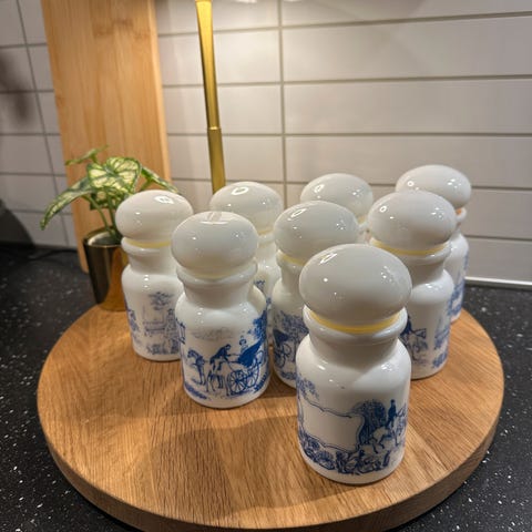 Vintage og retro opalinglass til krydder - krydderkrukker